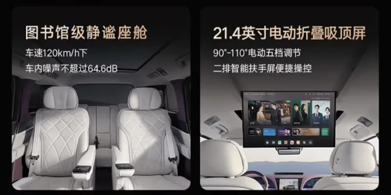 新车还拥有二排双行政零重力座椅,配备双智能扶手屏、双小腿托、右后脚托、双后排行政桌板、双无线充,支持一键舒躺模式、云卧观影模式、全平躺椅模式。